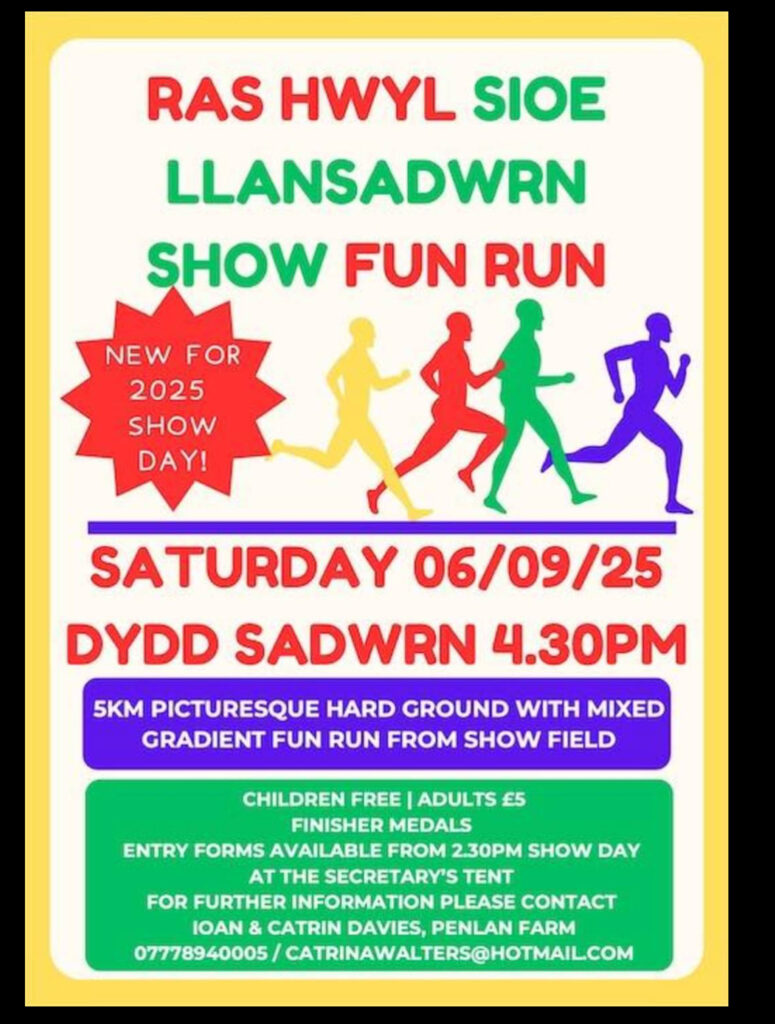 9.00 SIOE YN AGOR 9.00 Dosbarthiadau Ceffylau a Merlod CUP PRESENTATION for In Hand Horse & Pony Section 11.00 Mae’r babell yn cau ar gyfer pob dosbarth yn yr Adrannau garddwriaethol, Celf a Chrefft 11.30 Adran Defaid CUP PRESENTATION for Sheep Section 13.00 Sioe Gŵn CUP PRESENTATION for Dog Show 16.00 ANERCHIAD YR ARLYWYDD CUP PRESENTATION for Horse & Horticultural, Handicrafts, Country Crafts, Arts & Children’s Sections
